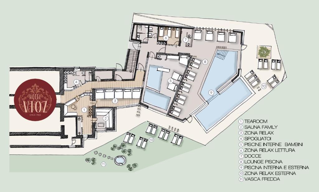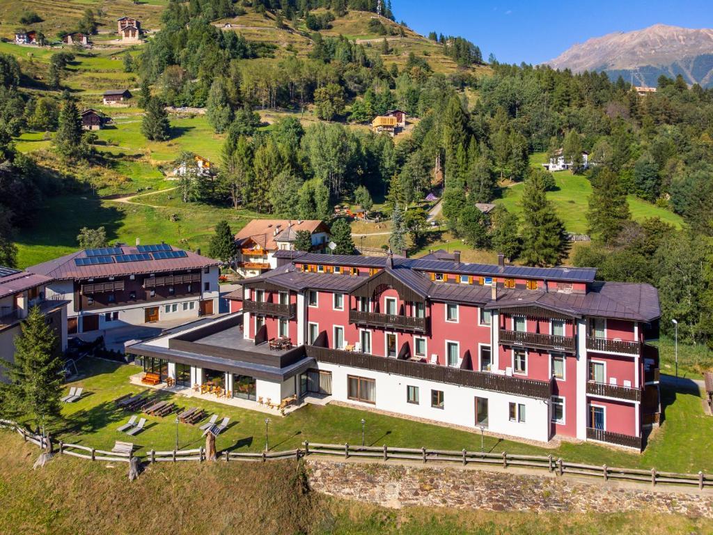 Położony na wysokości ok. 1385 m n.p.m., ok. 300 m od centrum Pejo. Do najbliższych wyciągów w Pejo ok. 300 m, do gondolki Marilleva 900 ok. 17 km (połączonej z wyciągami i trasami narciarskimi z SkiArea Campiglio Dolomiti di Brenta - Marilleva 1400, Folgarida, Madonna di Campiglio, Pinzolo). Do Tonale (Adamello Ski) z Lodowcem Presena ok. 25 km. Przystanek skibusa (gratis) znajduje się ok. 300 m od obiektu Wyposażenie hotelu to recepcja, restauracja, bar, jadalnia, przechowalnia sprzętu narciarskiego, parking (gratis). Obiekt składa się z trzech budynków – głównego (gdzie znajduje się restauracja, recepcja, jadalnia, bar), rezydencja (gdzie znajdują się apartamenty, duma hotelu jest nowootwarte centrum wellness basenem wewnętrznym i zewnętrznym. W hotelu jest także przechowalnia sprzętu narciarskiego) oraz dependance Casa Lisetta (gdzie znajduje się część pokoi economy/smart, garaż, sala gimnastyczna). Internet (Wi-Fi, gratis, w wyznaczonych miejscach)
